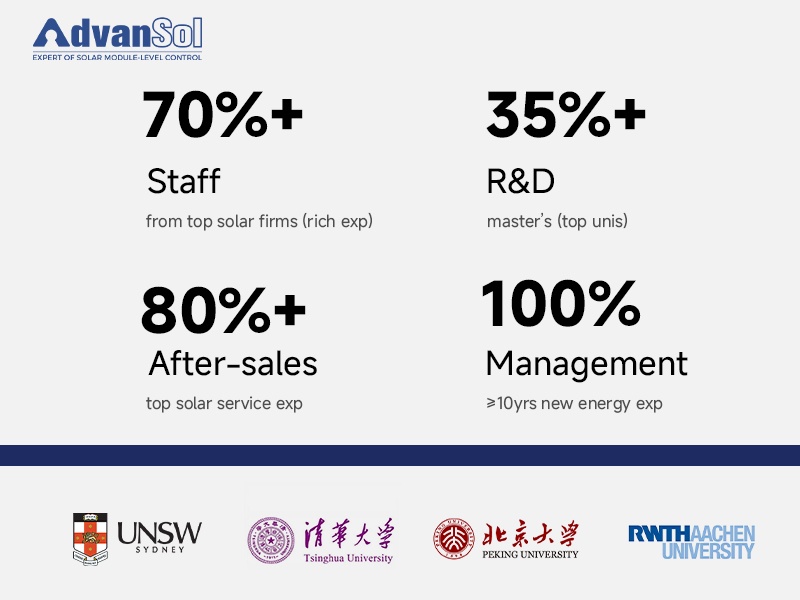 As a technology-driven new energy company, AdvanSol adheres to a long-term R&D strategy and continues to increase investment in independent innovation. By building core technological barriers around module-level and system-level intelligence, the company delivers safe, efficient, and sustainable photovoltaic solutions to global markets.