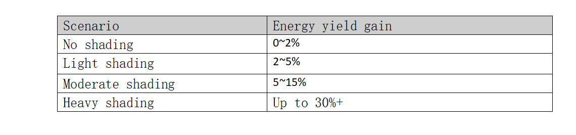 โมดูลที่ถูกบังแสงจะไม่ทำหน้าที่เป็นโหลดภายในระบบหรือแย่งพลังงานจากโมดูลอื่นอีกต่อไป สิ่งนี้ไม่เพียงแต่ช่วยขจัดปัญหาการสูญเสียพลังงานที่เกิดจากจุดร้อน แต่ยังช่วยปกป้องโมดูลได้อย่างมีประสิทธิภาพและยืดอายุการใช้งานโดยรวมของระบบอีกด้วย